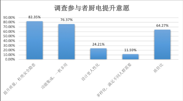 在厨电消费问题征集环节,调查参与者提出的期待反馈诸如,“期待一机多用,而不是厨房大大小小各种电器”“希望以后的厨房电器更加智能化、功能集成化,一个厨房只要一个电器就能满足所有需求”“可以增加功能,不然家电太多占空间”……