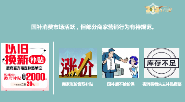 三是国补政策下的消费市场活跃,部分商家营销行为有待规范。