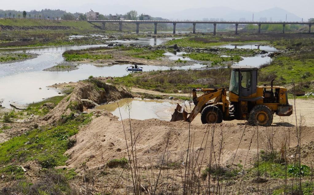 记者在长江一条支流走访,沿河走不过两三公里,就看到3台小型吸砂机具停在河道中。有的是小型吸砂筏,用管子在水中吸砂,一人即可操作;有的是挖掘机,直接在裸露的河床上挖砂,再用小货车运走。记者沿河看到,因过度采砂,多处破碎的河床触目惊心:河道布满深坑,坑内水成了死库容,坑外干枯长满野草。