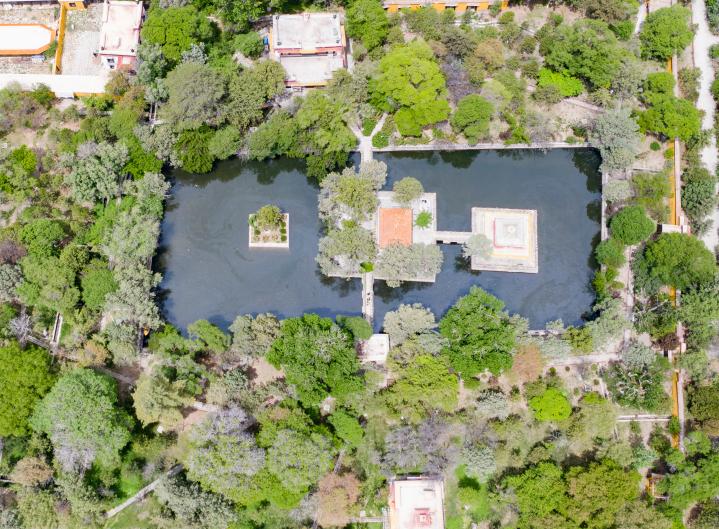 空中俯瞰罗布林卡一角(无人机图片)。新华社记者 普布扎西 摄