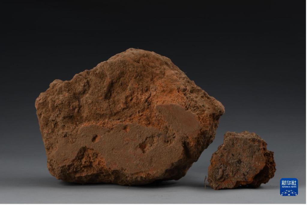 这是仰韶村遗址发现的红褐色涂朱草茎泥墙壁遗存。新华社发(河南省文物考古研究院提供)