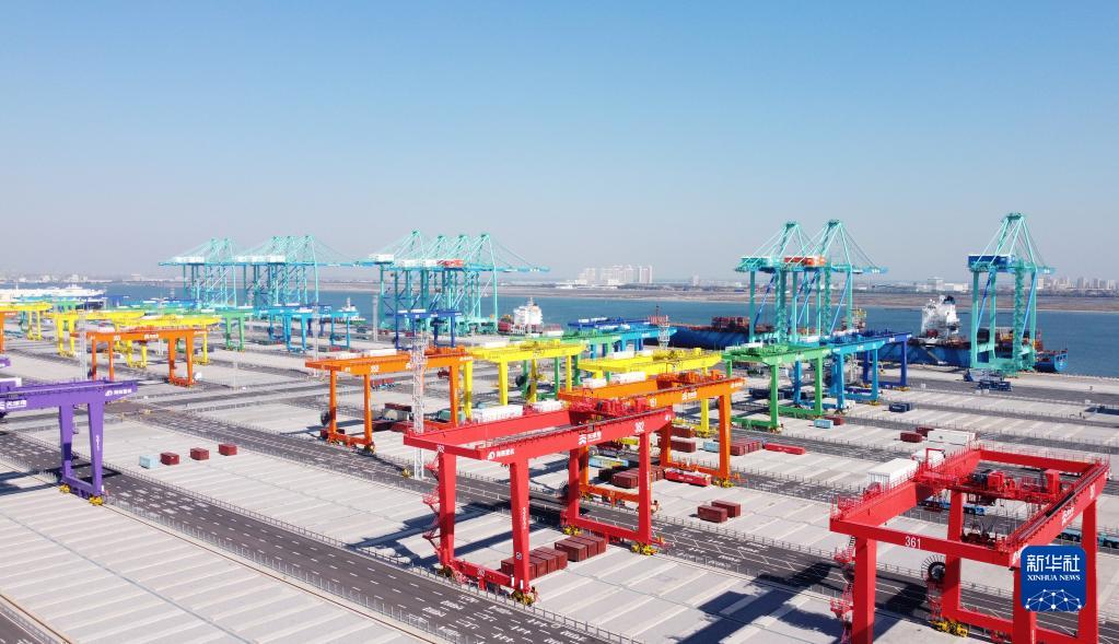 这是10月17日拍摄的天津港北疆港区C段智能化集装箱码头(无人机照片)。新华社记者 赵子硕 摄