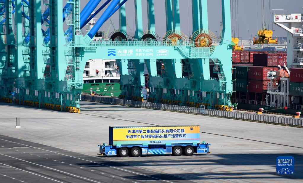 新华社天津10月17日电(记者王井怀)10月17日,历时21个月建设的天津港北疆港区C段智能化集装箱码头正式投产运营。天津港集团党委书记、董事长褚斌介绍说,这是全球首个“智慧零碳”码头,以全新模式为世界港口智能化升级和低碳发展提供了样本。