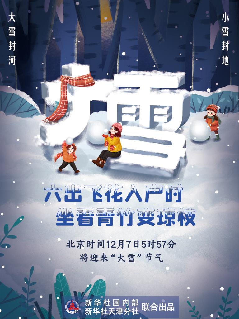 新华社天津12月5日电(记者周润健)《2021年中国天文年历》显示,北京时间12月7日5时57分将迎来“大雪”节气,标志着仲冬时节开始。专家表示,此时节,我国越来越多的地区会迎来降雪,雪后气温下降,寒冷加剧,公众要注意防寒保暖,避免流感等疾病侵扰。