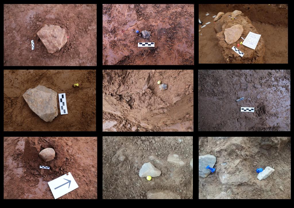 ↑太子陵旧石器时代遗址石制品出土现场。(天津市文化遗产保护中心供图)