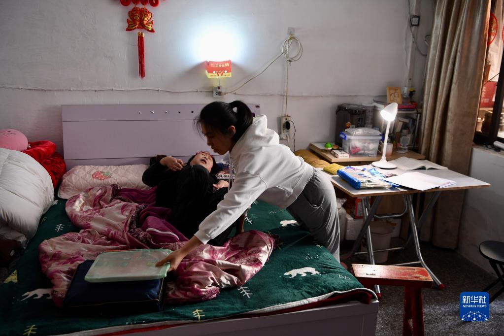 在福州一个旧小区一楼约20平方米的出租屋内,19岁女孩王林慧照顾母亲安静入睡后,又埋头翻阅起护理学专升本教材。