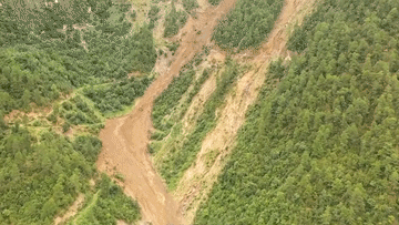2021年8月30日7时,该隐患点出现大范围滑坡,滑坡体方量达150万立方米,造成18座104间房屋垮塌,无一人伤亡。