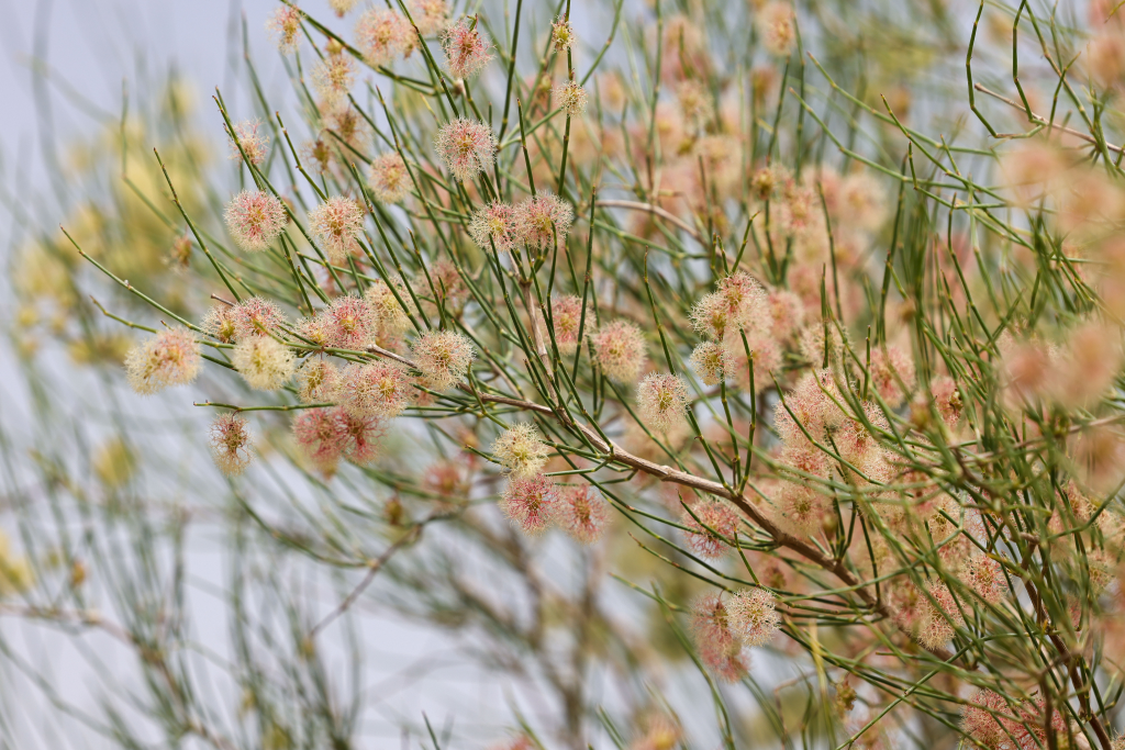 这是5月19日拍摄的和若铁路沿线种植的沙拐枣。新华社记者丁磊 摄