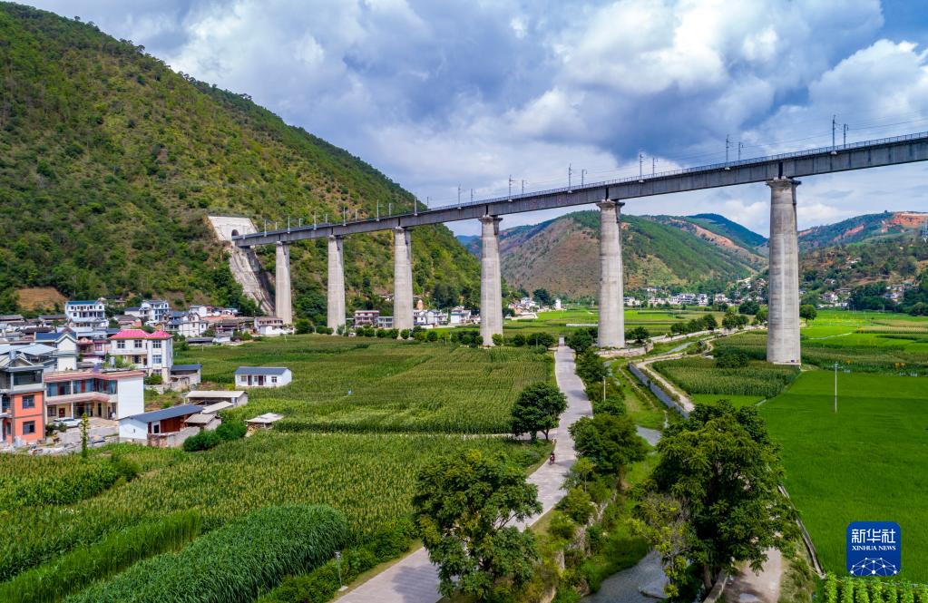 7月22日拍摄的大瑞铁路大保段西山寺特大桥(无人机照片)。新华社记者 陈欣波 摄