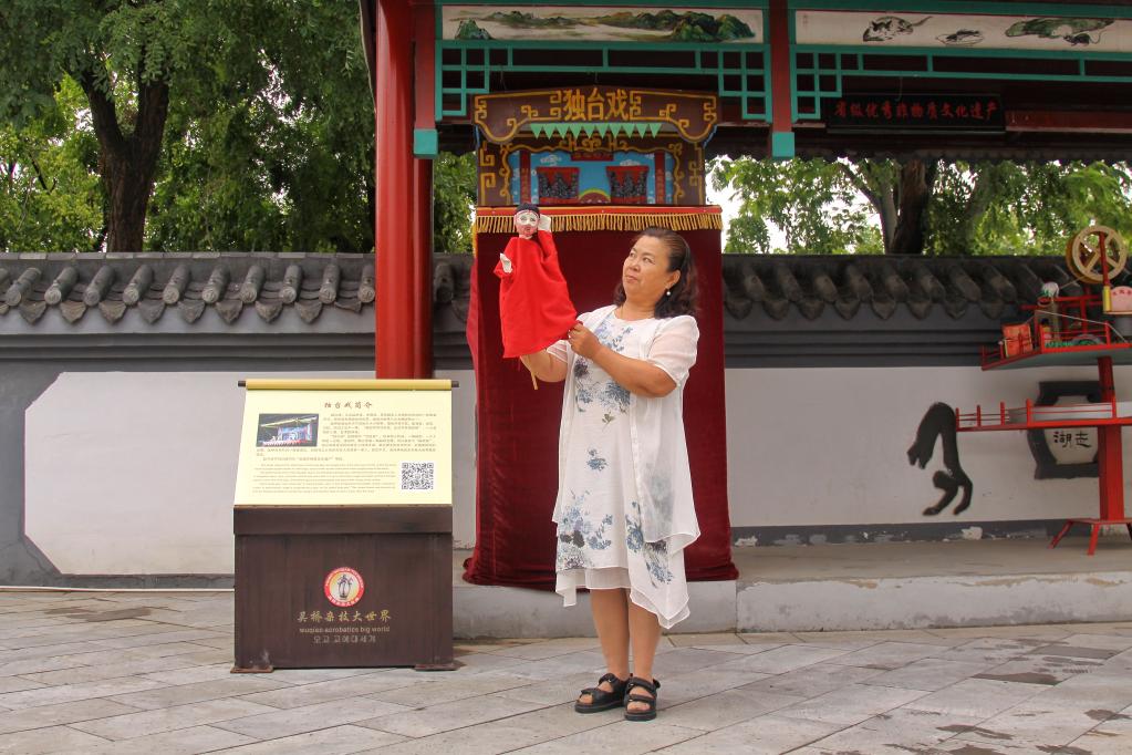 “手打阴阳板,锣鼓闹喧天。木人耍杂技,大家都来看……”暑假期间,在河北沧州吴桥杂技大世界,河北省级非遗项目独台戏表演吸引众多游客驻足观看。