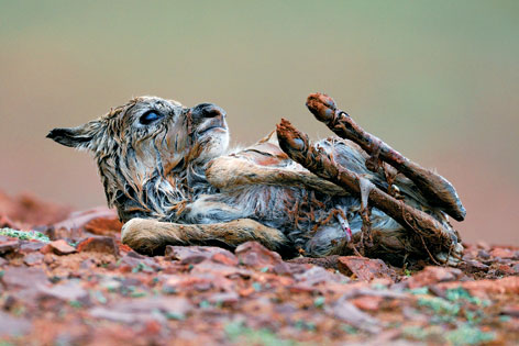 裴竟德拍摄的藏羚羊野外分娩瞬间。