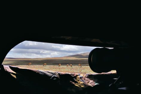 裴竟德从“掩体”中拍摄藏羚羊。(图片均由裴竟德提供)