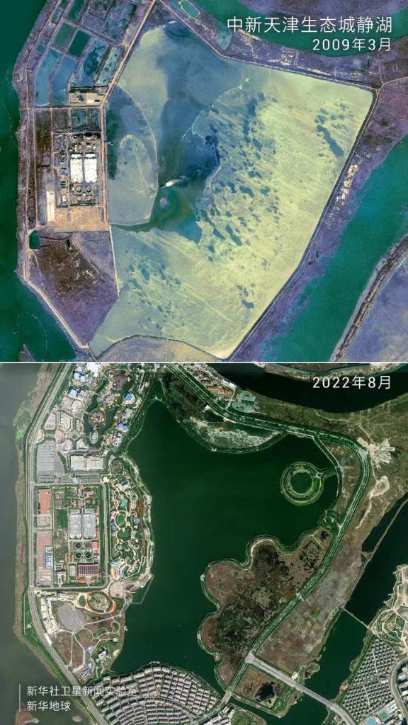 在生态城,静湖被评为天津市“最美河湖”,而2008年前,这里却是一座占地2.56平方公里的污水库。