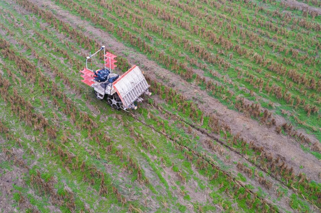 2月8日,在湖南省常德市鼎城区国家现代农业产业园,一辆无人驾驶插秧机正在田间测试。新华每日电讯记者陈思汗摄