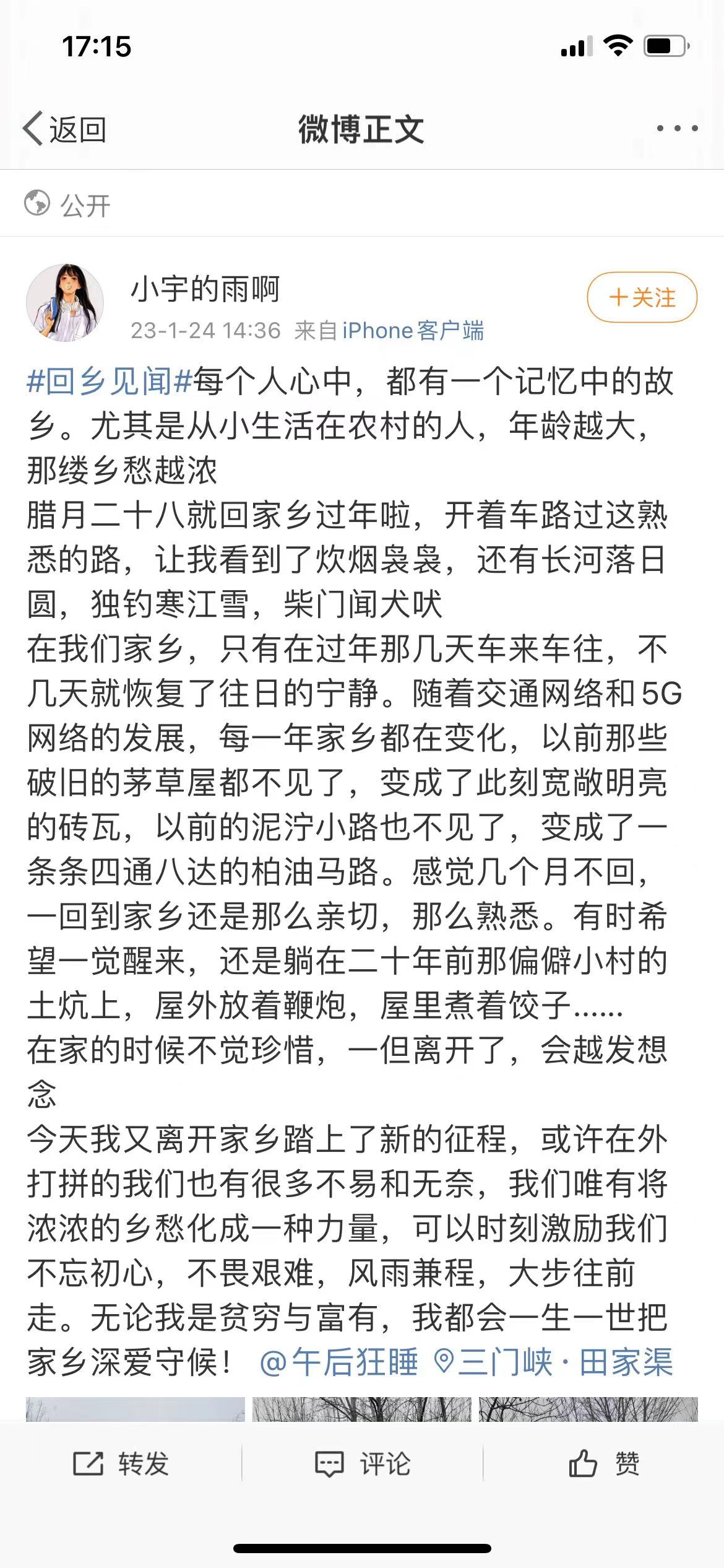 如何记录乡村,首先是如何理解乡村。上面的分析主要是基于微博的文本分析和问卷的统计分析。本节将结合此次“回乡见闻”的微博,进行一些相对主观的讨论。