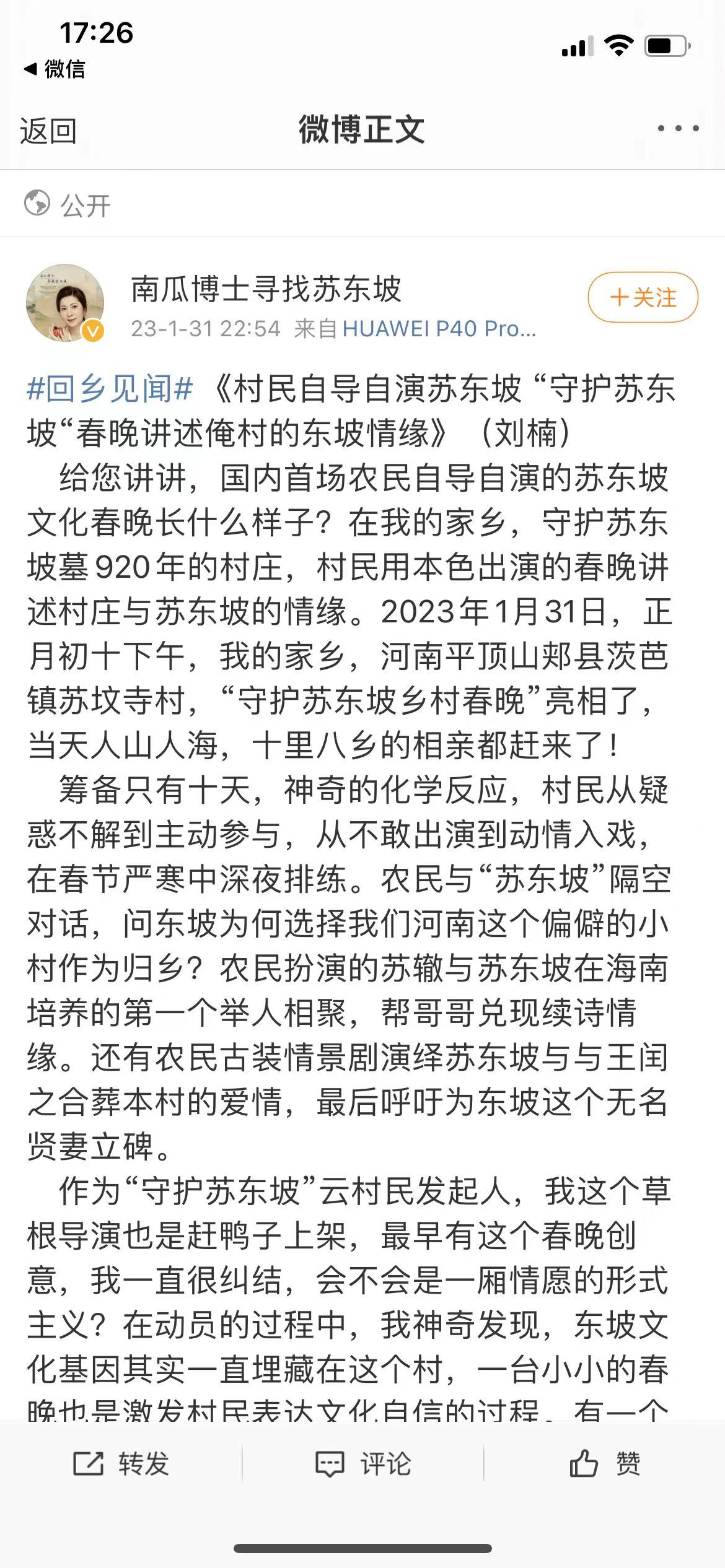 纵向对比近年来的返乡书写,今年微博发起的“回乡见闻”具有建设性,即不再是一味唱衰或抒发个人情感,很多优质博文都在努力地探寻乡村发展新的可能性,以及相对客观的讨论如何建设发展自己的家乡。比如有人关注乡村春晚、传统复兴,也有人认为乡贤是重要的可团结主体,还有人认为数字化发展是未来乡村的方向,等等。正如英国马克思主义学者威廉斯所说,“要让希望具有可行性,不要让绝望具有说服力”。诚然,我们必须承认当代中国乡村还有这样那样的很多问题,甚至不无危机,但是乡村内生动力正在激发,外部资源也正在绵绵不断地导入。在乡村振兴的战略背景下,我们有理由相信,乡村会发展得越来越好。