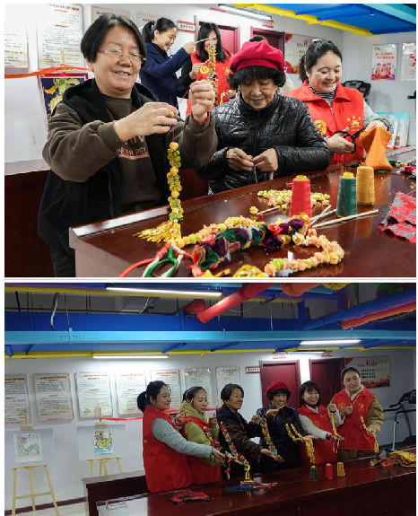 社区居民在绘画老师的指导下,用纸板、画笔等工具,制作出龙头的立体造型,一条活灵活现的“中国舞龙”就横空出世了。