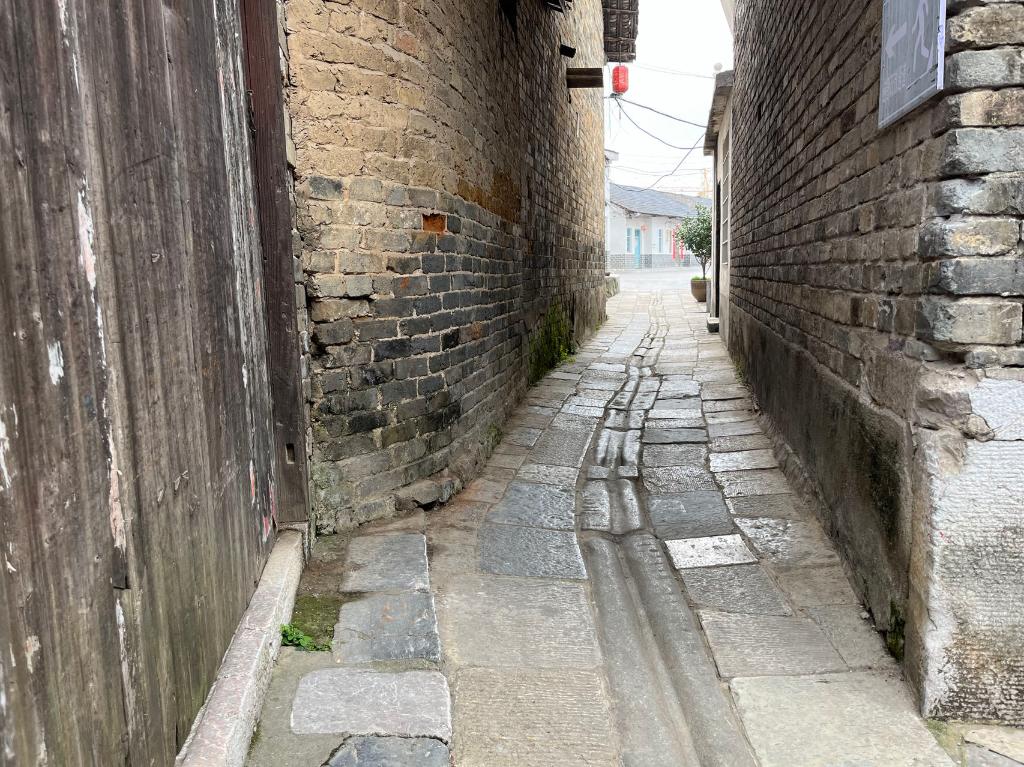 羊楼洞古街侧巷遗留的车辙印记。新华社记者潘志伟 摄