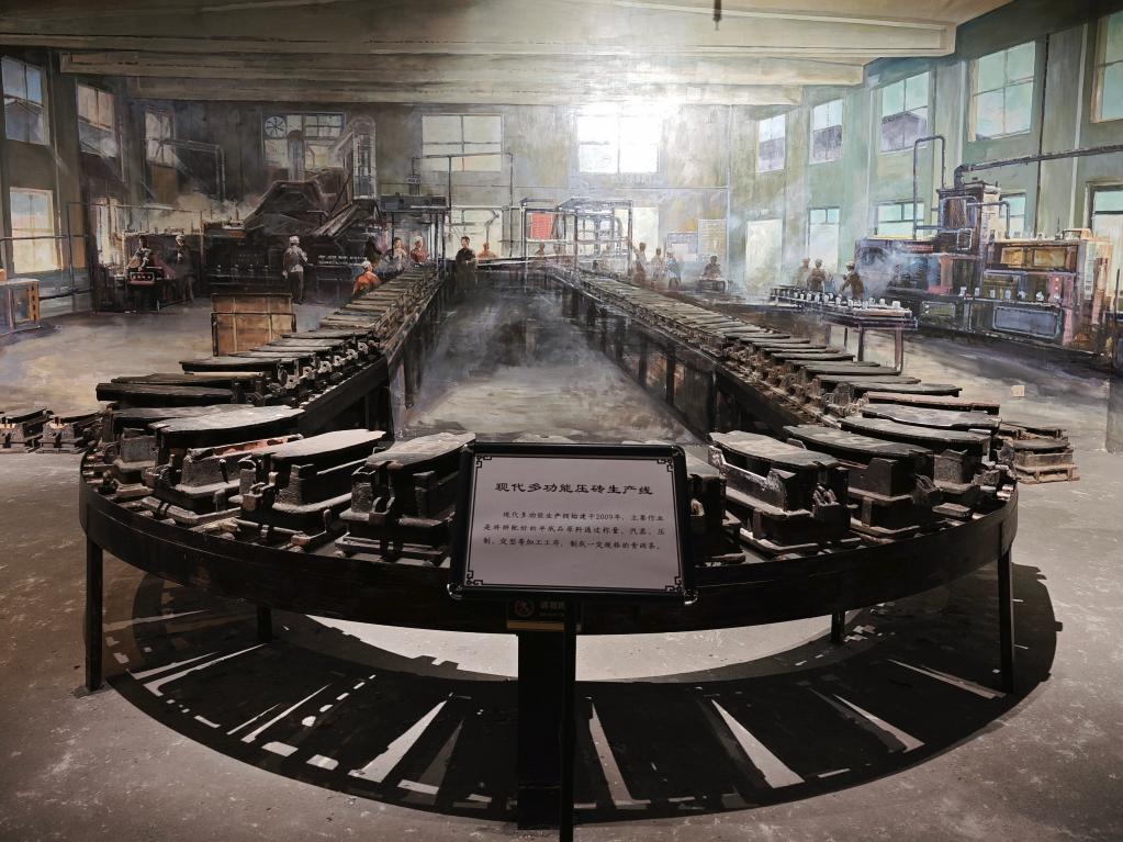 中国青砖茶博物馆展陈的青砖茶生产线。新华社记者伍志尊 摄