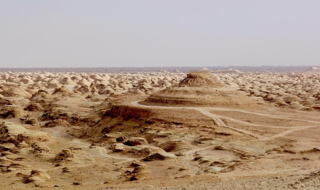 这是4月8日在“火星一号”公路旁拍摄的雅丹群。新华社记者 顾玲 摄