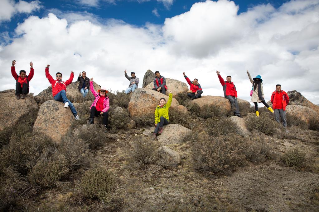 在古冰川遗迹留下的巨石上,我给科研人员们拍了这张合影。