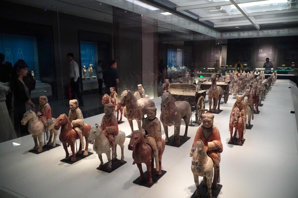 5月15日,在山东省青州市新博物馆展出的西汉彩绘陶俑。新华社记者徐速绘摄