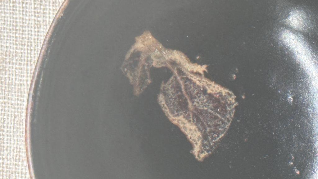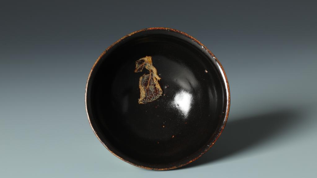 吉州窑曾是12-13世纪世界上最具创新能力的窑场之一,木叶贴花工艺是其独创的陶瓷装饰手法之一。700多年前,吉州工匠将天然树叶贴在施满黑釉的茶盏上,投入高温窑炉后,树叶的形脉竟神奇地得以保留在黑釉上。更有意思的是,烧成的每件木叶盏都是独一无二的,半叶、一叶、二叶甚至三叶相叠,姿态万千,妙趣天成。