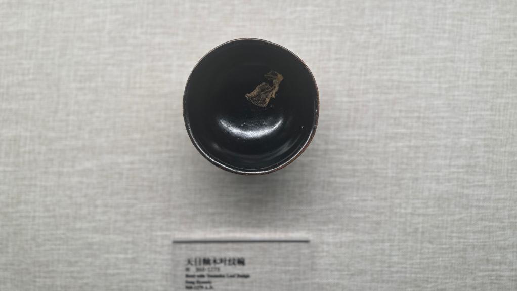 在吉安市博物馆展厅中拍摄的宋代吉州窑木叶蚕纹瓷盏。新华社记者袁慧晶摄