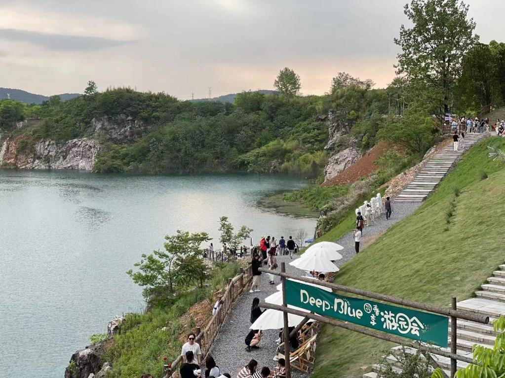5月2日,浙江安吉,依托废弃矿坑打造的一家咖啡馆吸引了不少游客。 新华社记者段菁菁 摄