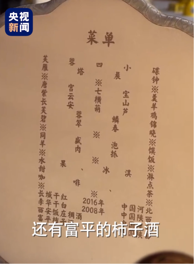 5月18日晚,习近平主席夫妇为来华出席中国-中亚峰会的贵宾举行欢迎宴会。此次宴会以陕西特色美食款待中亚五国贵宾,展现中国的待客之道和文化魅力。媒体对这次国宴的评价为“本地菜、家乡酒,招待好朋友”。在央视的报道中,我们看到此次国宴的菜单上,不仅有大家熟知的陕西“本地菜”——羊肉泡、葫芦鸡、横山羊,还有一款“家乡酒”——来自富平的柿子酒。