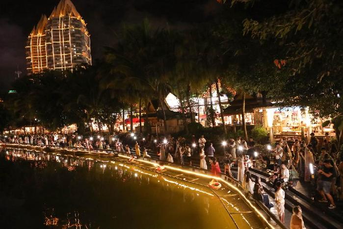 澜沧江畔,西双版纳傣族自治州景洪市的“网红打卡地”告庄西双景湄公河星光夜市流光溢彩,游客摩肩接踵。