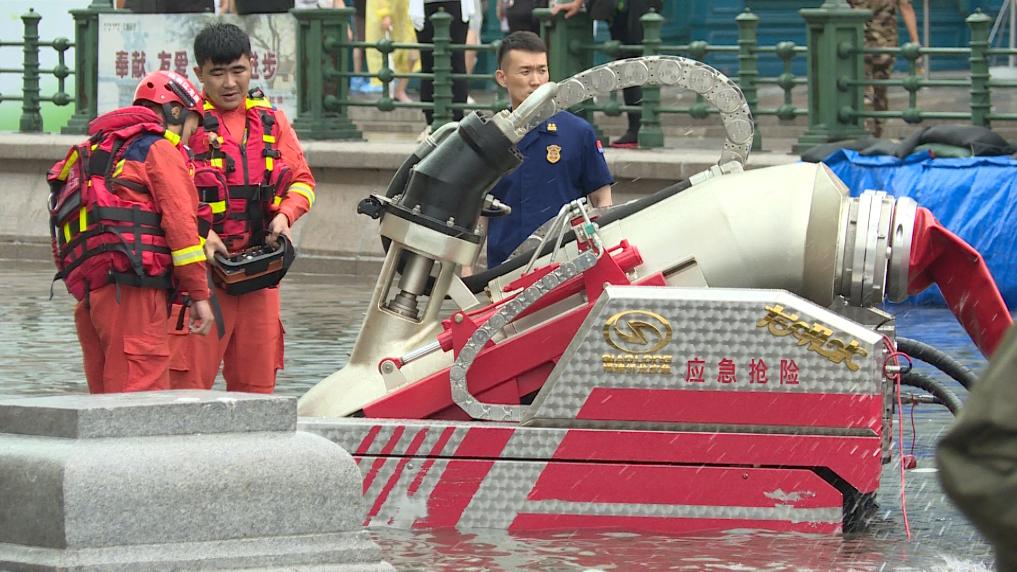 哈尔滨市消防救援支队迅速响应,携带水域救援及排涝设备赶赴内涝现场,加紧排涝工作。