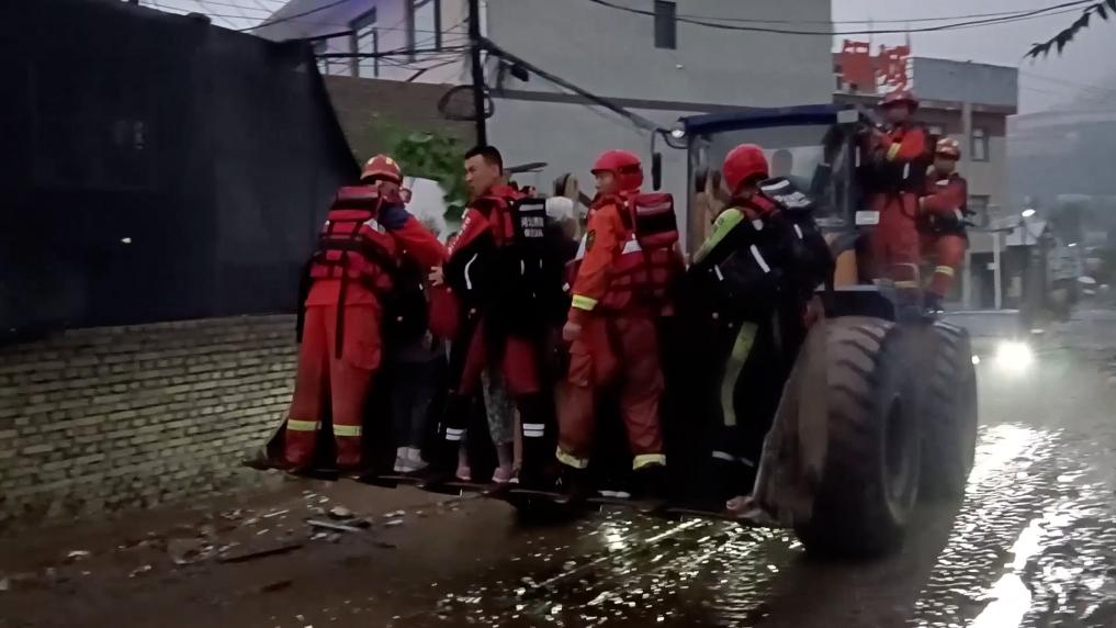 8月1日,消防救援人员运用铲车解救被困群众。(董军伟摄)