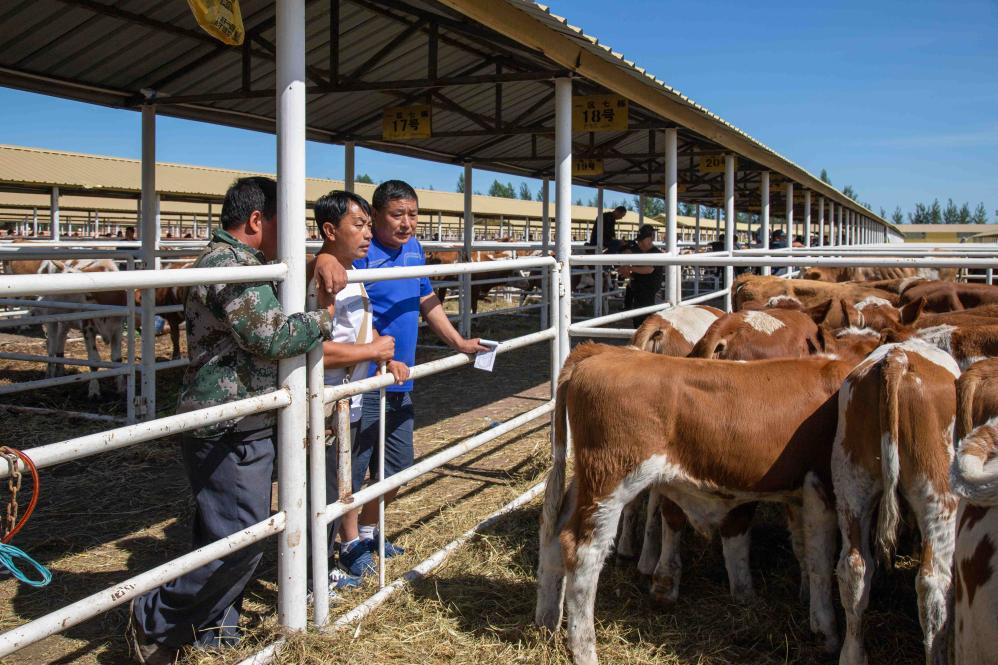 8月24日,养殖户在中国牛交易大集上挑选肉牛。(宝音德力格尔摄)