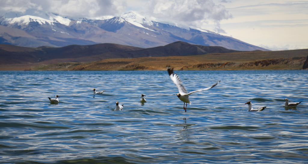 玛旁雍错水鸟成群(8月13日摄)。新华社记者 聂毅 摄