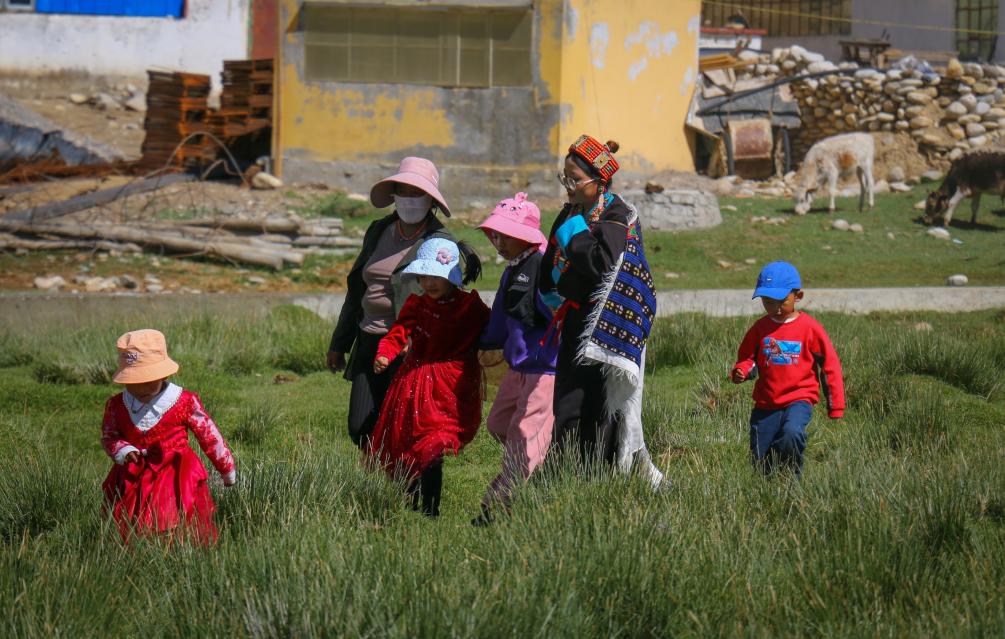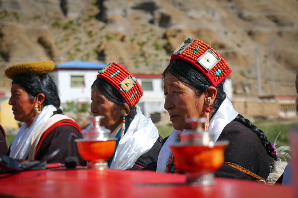 仁贡村距离普兰县城29公里,海拔约4200米。33岁的村民益西平措告诉记者:“以前我只会务农和放牧,但出于兴趣,会在农闲时跟村里的老人学习‘孔雀饮酒舞’和敬酒歌‘雅尔松吧’等。”如今益西平措在村里也收了十几个学生。