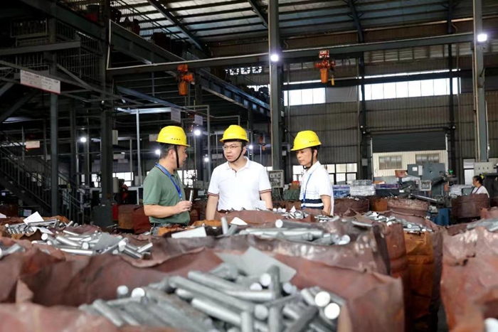 南安市柳城街道纪检监察干部在辖区企业了解有关问题。图源:福建纪检监察