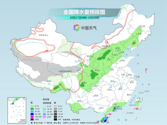 本周,影响我国的冷空气活动频繁。今天(10月17日)起,较强冷空气将陆续给我国大部地区带来雨雪降温天气过程,其中,对北方的影响尤为明显,局地降温可达10℃,降温过后,东北、华北、黄淮气温将大面积创今年立秋以来新低,凉意加重。这轮冷空气带来的雨雪总体不强,不过华南一带受南海热带扰动和冷空气共同影响,部分地区将遭遇持续性强降雨,公众需注意防范。