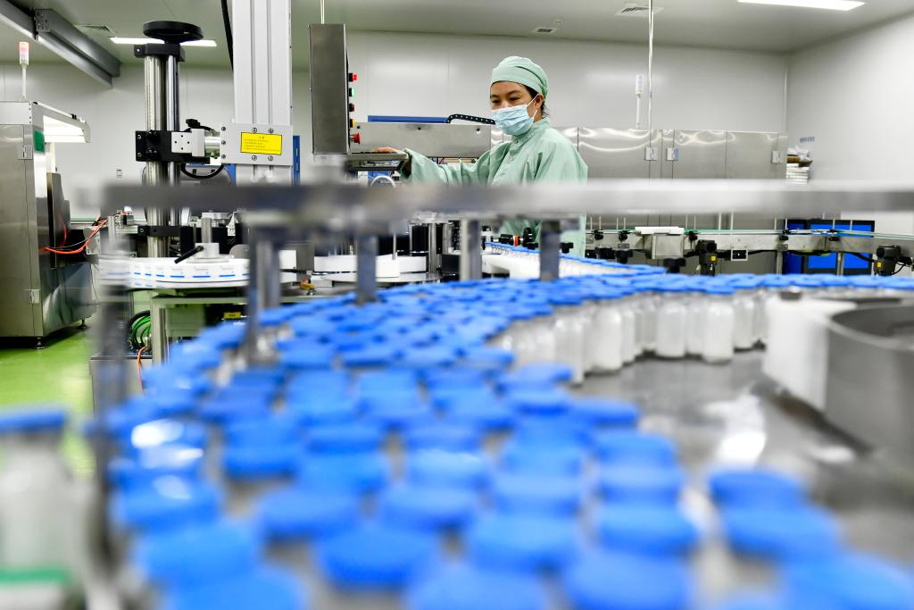 在菏泽了未元生物医药大健康产业园,工作人员在抗生素生产线值守。新华社记者郭绪雷 摄