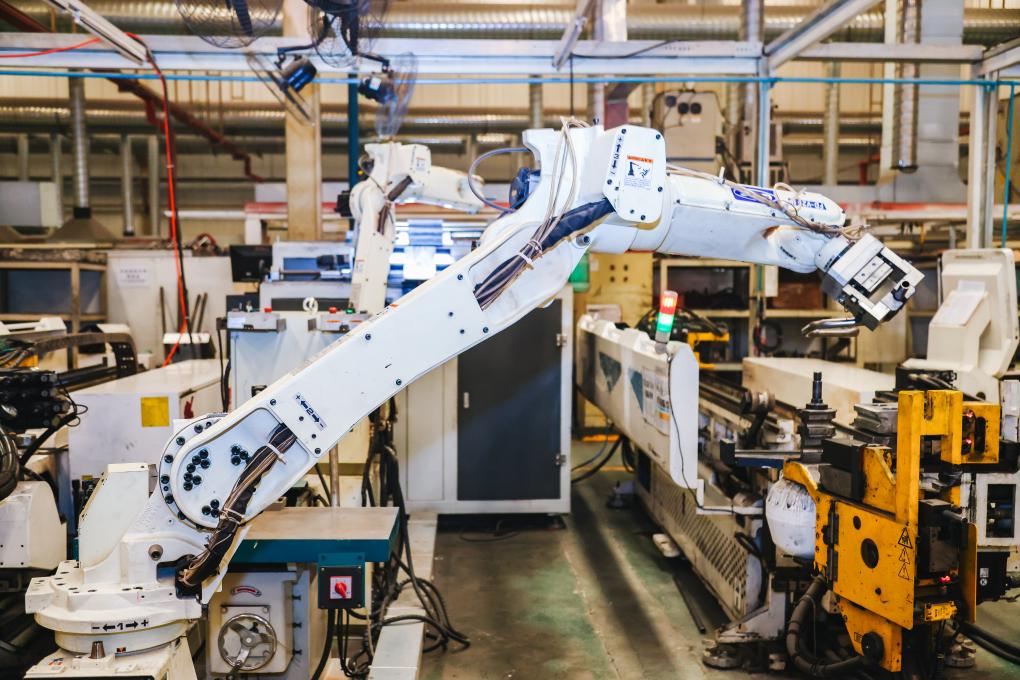 爱玛科技集团天津生产基地中,机器人手臂正在作业。(受访者供图)