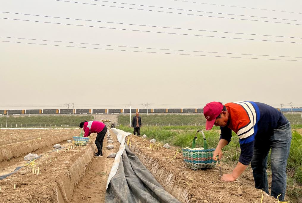 村民在万荣县裴庄镇田间采收芦笋。 新华社记者王皓 摄