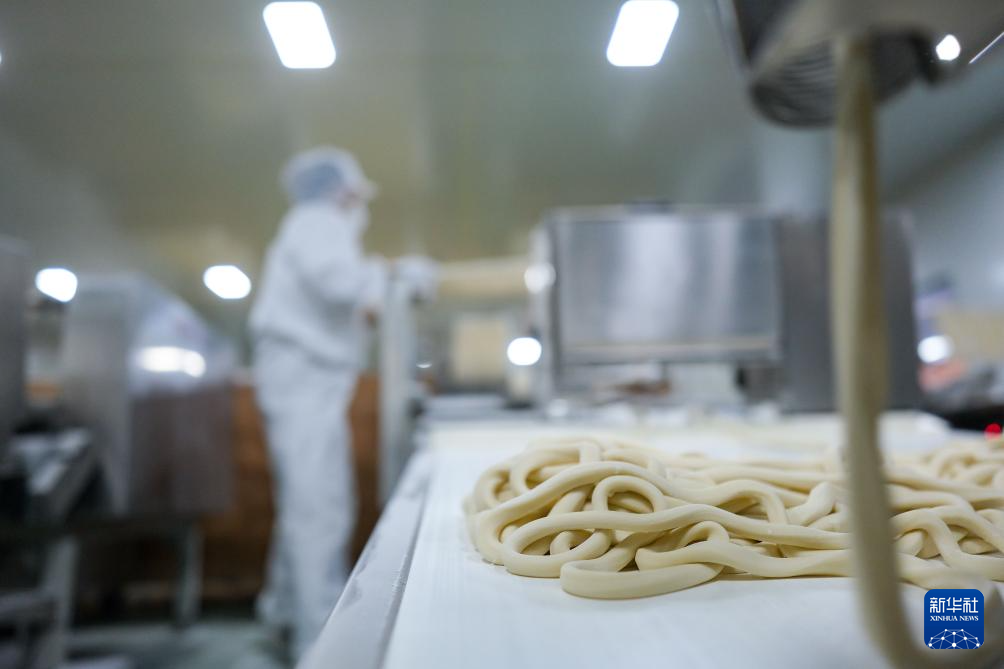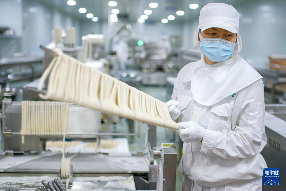 12月20日,奇台县腰站子村村民在面条生产车间作业。新华社记者 张铖 摄