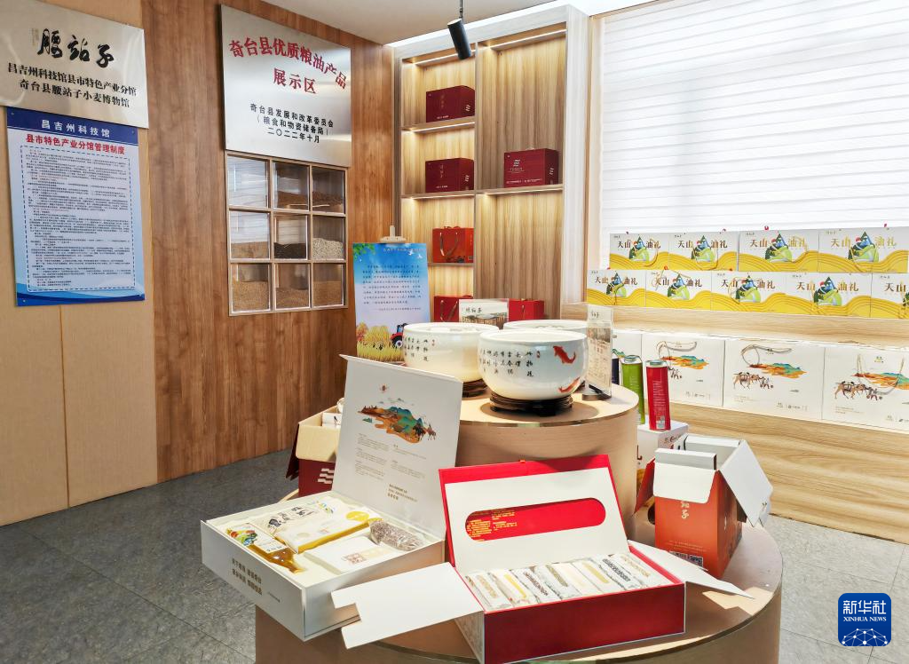 这是12月20日在奇台县腰站子村的小麦博物馆拍摄的“腰站子”品牌有机产品。新华社记者 苟立锋 摄