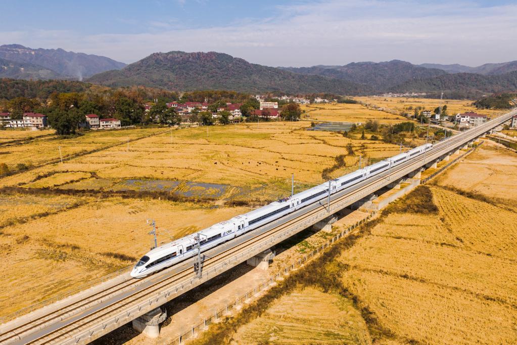 这是浮梁东站进站的高铁列车。(张萌飞 摄)