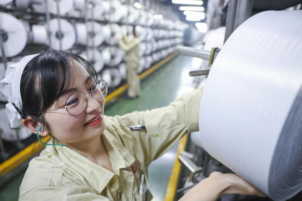 工人在位于吴江区盛泽镇的江苏恒力化纤股份有限公司工作。(受访者供图)