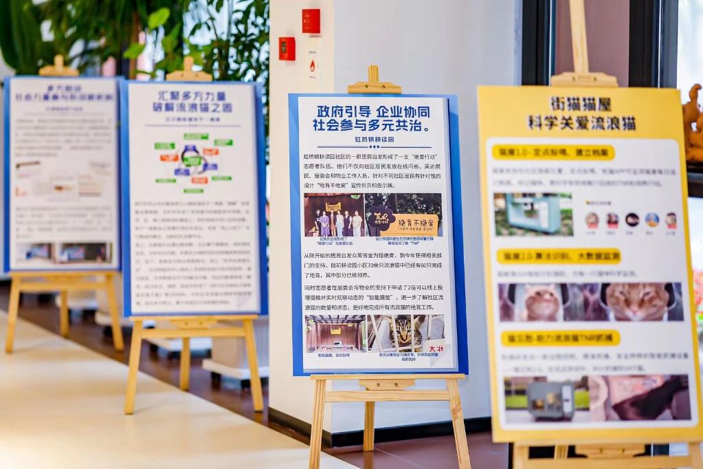 上海基层社区开展流浪猫治理工作展板。新华社发(宋文明摄)