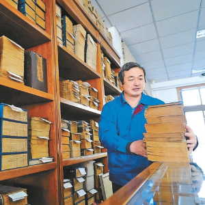 中国书店琉璃厂店工作人员正在整理古旧书。