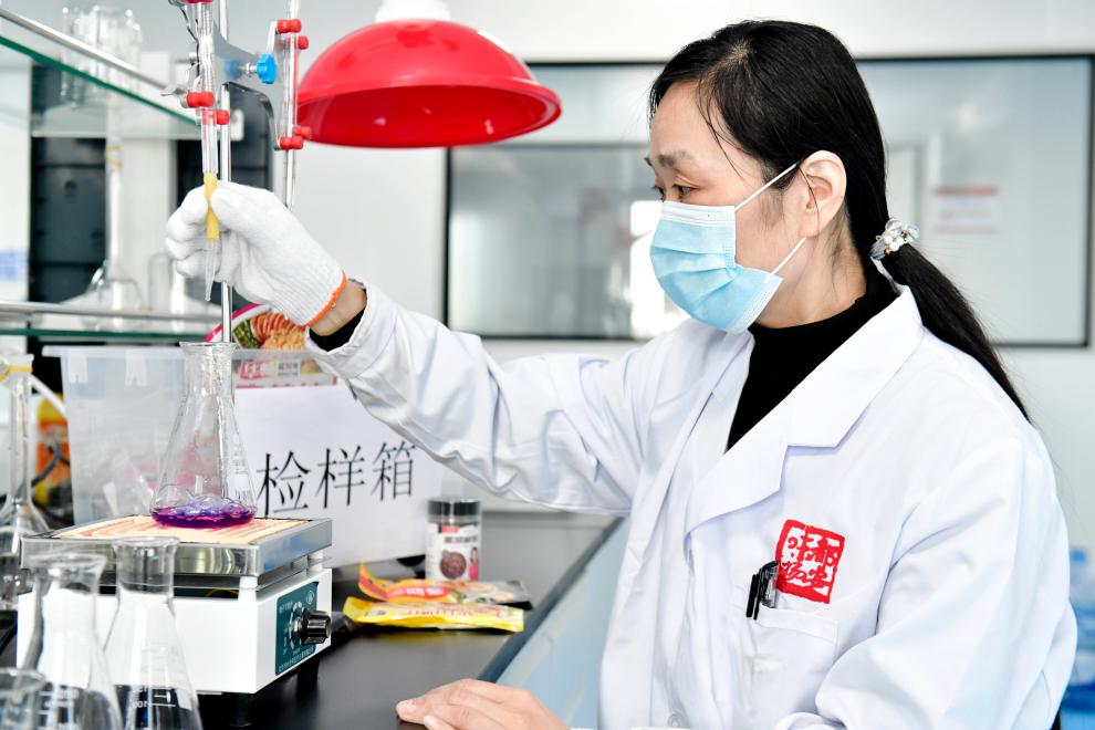 工作人员在乐陵市调味品产业共享实验室对送样调味品进行检测。新华社记者 郭绪雷 摄