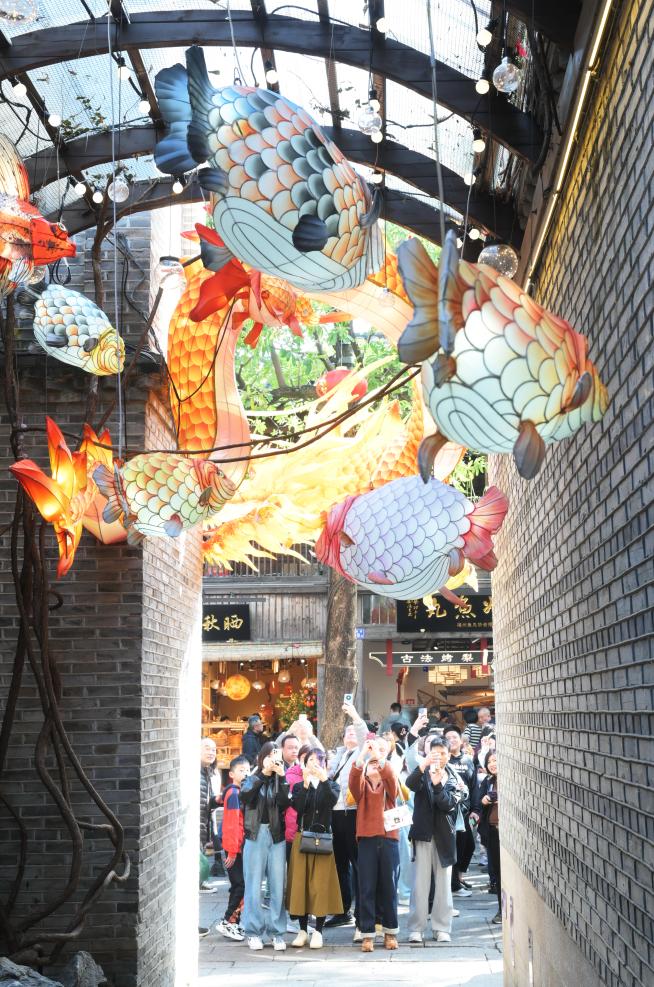 新华社福州2月17日电(记者林善传)龙年春节期间,中国历史文化名街福建福州南后街三坊七巷上的《花灯》铜雕,成为众多游客的网红打卡地,许多大人、小孩会在栩栩如生的《花灯》铜雕前拍照留念。