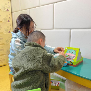2018年,小阳(化名)妈妈带着不到2岁的女儿来到这里接受康复训练。作为小阳的康复老师,谷长芬和中心其他老师共同给小阳制定了一套完整的个别化培训课程。从最开始的“失语”“呆滞”状态,到如今在认知理解、语言表达、适应能力和社会交往等方面明显提高,让小阳的家人看到了新的希望。